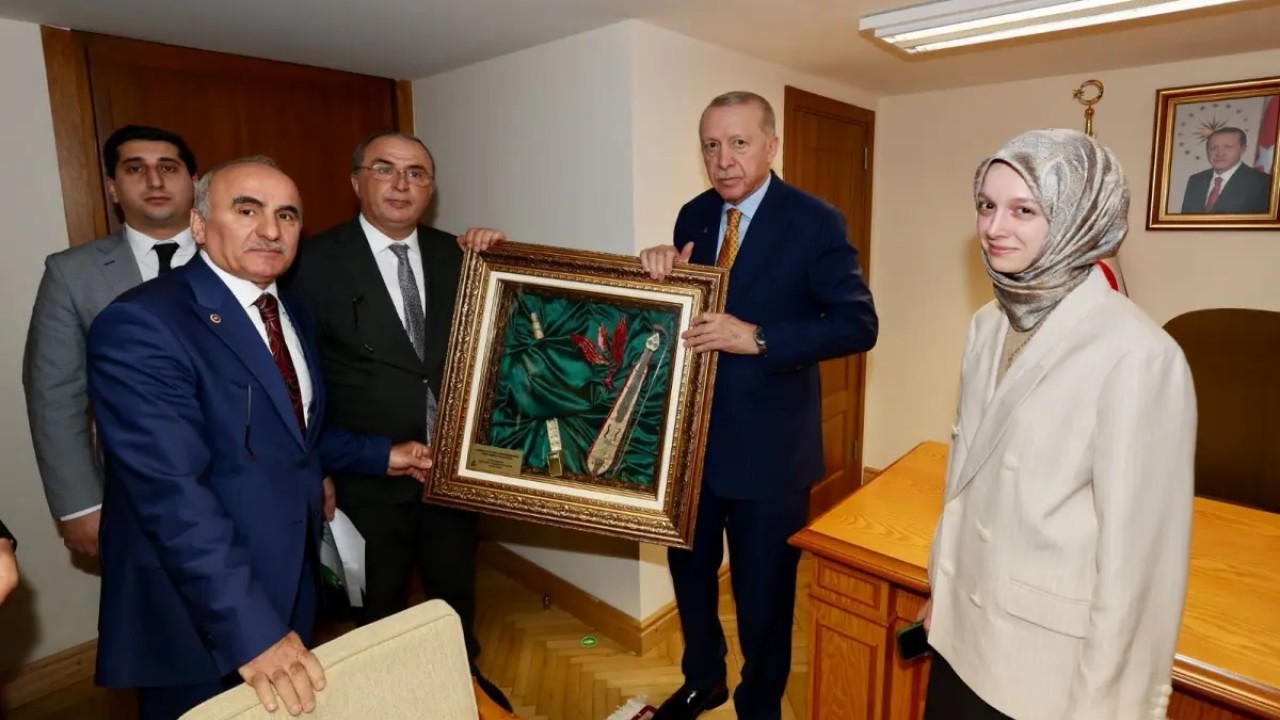 TBMM'deki görüşmede Ankara Rize Dernekleri Federasyonu (RİDEF) Genel Başkanı Muammer Bostan, Cumhurbaşkanı Erdoğan'a etkinlik hakkında detaylı bilgi sundu.