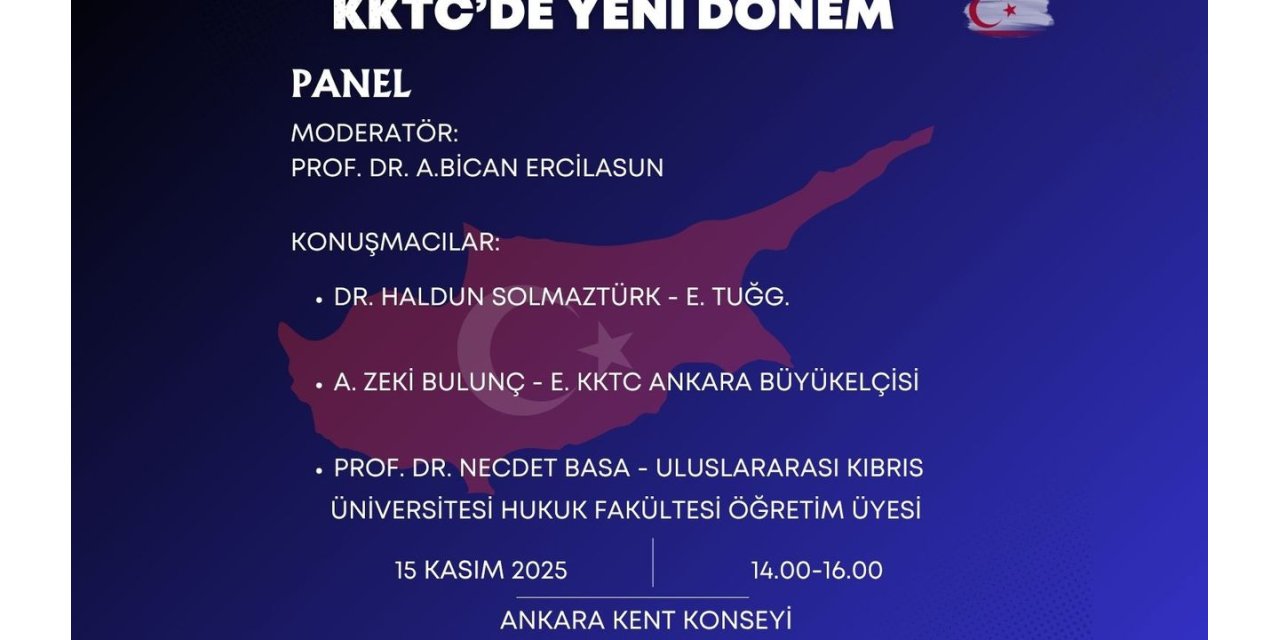 Ankara Kent Konseyi ve BASE işbirliğiyle düzenlenen bir panel, 15 Kasım 2025 tarihinde Ankara Kent Konseyi'nde gerçekleşecek. Panelde, KKTC'deki son gelişmeler ve diplomatik süreçler masaya yatırılacak.